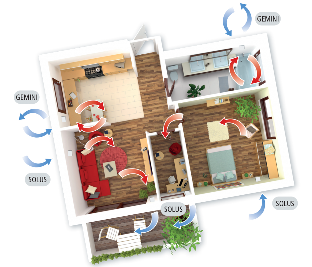 Our ingenious decentralized heat recovery air ventilation product refreshes the air without increasing your energy bills, with our largest Gemini 5000 unit using a maximum of just 4 watts.